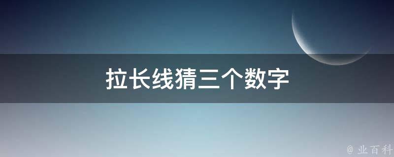 拉长线猜指的是数字9。拉长线儿,俗语,比喻作长远打算或安排。在数字1-9中,9是最大的,符合拉长线的意思。《红楼梦》贾芸道:好婶子,先把这个派了我吧。果然这个办的好,再派我那个。凤姐笑道:你倒会拉长线儿。罢了,要不是你叔叔说,我不管你的事。