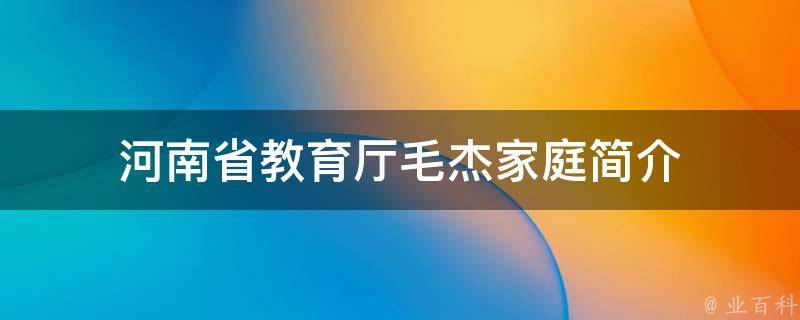 河南省教育厅毛杰出生在一个很普通的家庭里,她1988年4月加入中国共产党,1990年8月参加工作,清华大学研究生学历,教育学博士学位,享受国务院政府特殊津贴专家。任河南省教育厅厅长、党组书记,省委教育工委副书记。