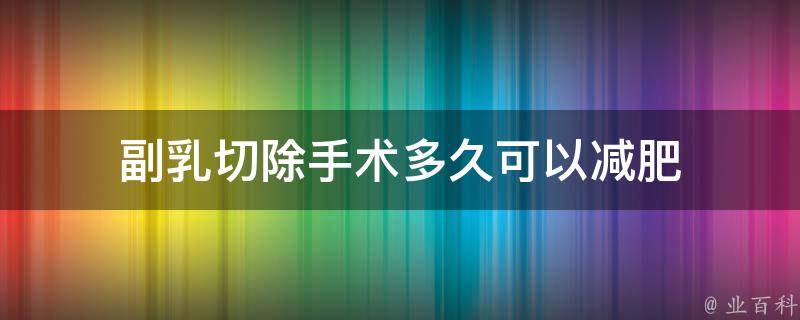 视情况而定。副乳切除手术后的恢复时间因个体差异而异,一般需要1-3个月左右才能完全恢复。在恢复期内,建议不要进行剧烈运动或减肥,以免影响手术效果和身体恢复。在完全恢复后,根据个人身体状况和医生建议进行适当的减肥或运动。