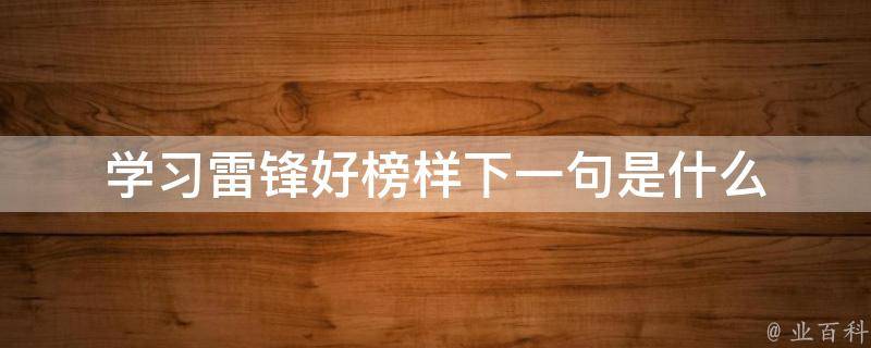 学习雷锋好榜样下一句是忠于革命忠于党。这句话是出自于《学习雷锋好榜样》这首儿童歌谣当中。部分歌曲是:学习雷锋好榜样,忠于革命忠于党,爱憎分明不忘本,立场坚定斗志强,立场坚定斗志强,学习雷锋好榜样,放到哪里哪里亮。