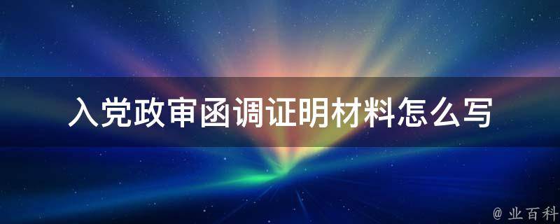 入党政审函调证明材料的写法没有固定的格式和要求,通常只需要根据实际情况如实填写即可。常见的写法是:介绍被调查人的基本情况,包括姓名、性别、年龄、工作单位等;说明被调查人在政治方面的表现,如是否热爱党、是否拥护党的路线方针政策等;提供有关政审的材料或情况,如是否有违法违纪行为、是否有过不良记录等。