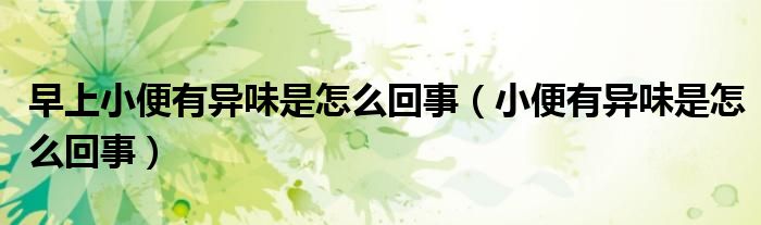 大家好,乐天来为大家解答以下的问题,早上小便有异味是怎么回事,小便有异味是怎么回事很多人还不知道,现在让我们一起来看看吧!
