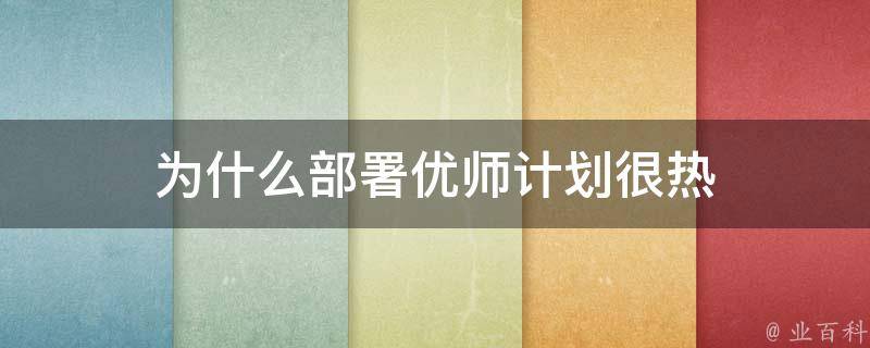 为什么部署优师计划很热