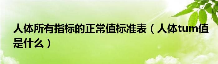 大家好,我是小科,我来为大家解答以上问题。人体所有指标的正常值标准表,人体tum值是什么很多人还不知道,现在让我们一起来看看吧!