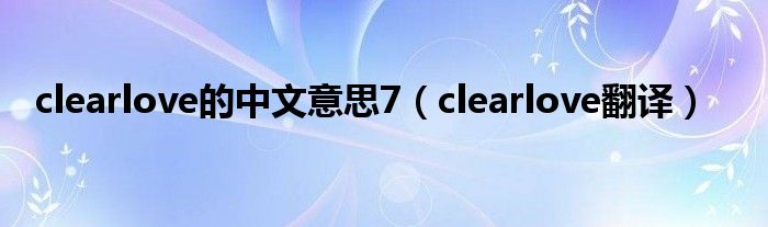 大家好,我是小科,我来为大家解答以上问题。clearlove的中文意思7,clearlove翻译很多人还不知道,现在让我们一起来看看吧!
