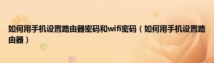 如何用手机设置路由器密码和wifi密码(如何用手机设置路由器)