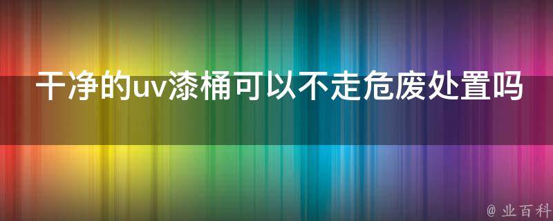 干净的uv漆桶不可以不走危废处置。虽然UV漆桶看起来干净,但它们可能仍然含有有害物质,因此需要按照规定进行危废处置。如果将其随意丢弃或不按规定处理,可能会对环境和人类健康造成危害。
