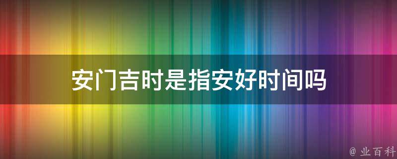 安门吉时不是指安好时间,而是指开始安装的时间。安门是传统建筑中的一种仪式,通常在房屋建造过程中进行。安门吉时是指在进行安门仪式时选择的一个吉利时刻。这个时刻通常由风水师或算命先生根据房屋的坐向、建造者的生辰八字等因素来计算确定。