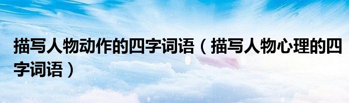 大家好,我是小科,我来为大家解答以上问题。描写人物动作的四字词语,描写人物心理的四字词语很多人还不知道,现在让我们一起来看看吧!