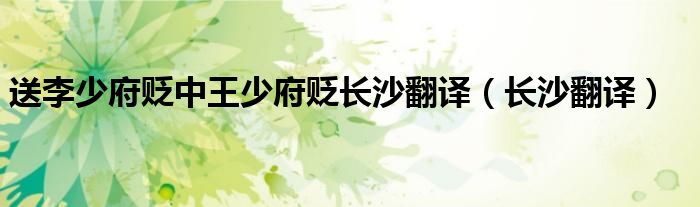 大家好,我是小科,我来为大家解答以上问题。送李少府贬中王少府贬长沙翻译,长沙翻译很多人还不知道,现在让我们一起来看看吧!