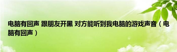 今天小饼为大家解答以下问题,关于电脑有回声 跟朋友开黑 对方能听到我电脑的游戏声音,电脑有回声很多人还不知道,现在让我们一起来看看吧!