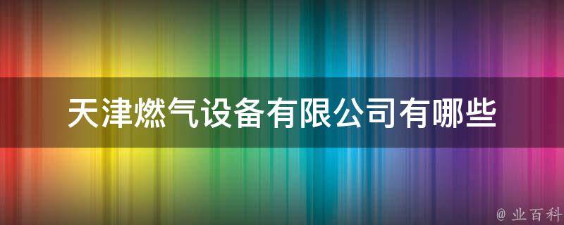最佳答案天津燃气设备有限公司有欧科能源技术(天津)有限公司、天津克瑞斯燃气设备有限公司、天津神菱燃气设备有限公司、新兴燃气(天津)有限公司、天津市汇信燃气设备有限公司等。燃气设备及管网是保障城市可靠供气的重要设施,其输送的是可燃介质,而且分布点多面广,涉及千家万户的用气。