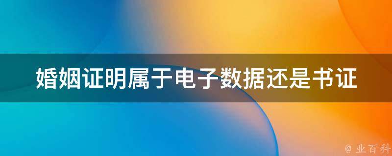 视情况而定。婚姻证明可以是电子数据,也可以是书证,这取决于其以何种形式呈现。如果是以电子方式存储和传输的婚姻证明,如电子结婚证,那么它就是电子数据。如果是以书面形式呈现的婚姻证明,如结婚证复印件或原件,那么它就是书证。