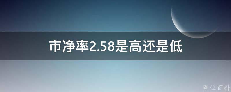 市净率2.58是低。市净率是指每股股价与每股净资产的比率,是股票投资分析中重要的参考指标之一。市净率的数值越低,代表投资价值越高,而数值越高,代表投资价值越低。市净率为2.58意味着股票的市场价格相对于其每股净资产而言较低。