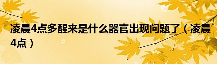 大家好,我是小科,我来为大家解答以上问题。凌晨4点多醒来是什么器官出现问题了,凌晨4点很多人还不知道,现在让我们一起来看看吧!