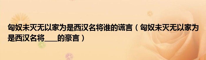 大家好,小联来为大家解答以上的问题。匈奴未灭无以家为是西汉名将谁的谎言,匈奴未灭无以家为是西汉名将____的豪言这个很多人还不知道,现在让我们一起来看看吧!