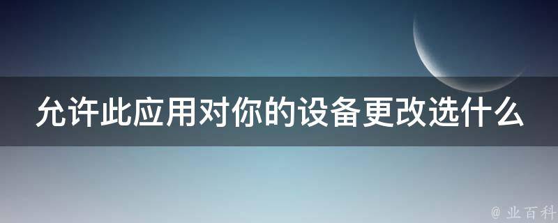 根据情况而定。允许此应用对你的设备更改意思是询问你是否同意某个应用程序对您的设备进行更改或安装。通常当您安装新应用程序时,系统会提示您是否允许它访问您的设备。这是为了保护您的设备的安全性和隐私。如果您信任该应用程序并希望它能够更改您的设备,您可以单击是以允许更改。如果您不信任该应用程序或不想让它更改您的设备,您可以单击否以拒绝更改。