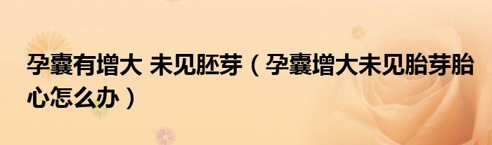 大家好,乐天来为大家解答以下的问题,孕囊有增大 未见胚芽,孕囊增大未见胎芽胎心怎么办很多人还不知道,现在让我们一起来看看吧!