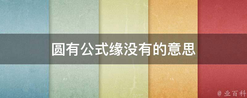 圆有公式缘没有的意思是指数学上的圆有一套确定的数学公式,而缘分则是一种无法被量化、测量的情感体验,两者之间没有必然的联系。从情感方面来说,这个说法意味着缘分不是一种可以被预测、测量或者掌控的东西,它是一种神秘而又无法捉摸的情感体验,需要缘分的双方真诚的付出和相互理解才能成就美好的感情关系。