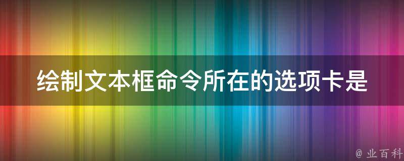 绘制文本框命令所在的选项卡是插入。要绘制文本框,首先需要打开Word文档并进入编辑状态,然后在插入选项卡中,可以看到文本框命令,点击它会弹出一个下拉菜单,其中包含了多个预定义的文本框样式,用户可以选择其中一个样式,然后鼠标光标会变成一个十字形,表示可以开始绘制文本框。