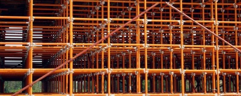 满堂脚手架是一种在水平方向满铺搭设脚手架的施工工艺,多用于施工人员施工通道。满堂脚手架为高密度脚手架,由立杆、横杆、斜撑、剪刀撑等组成,相邻杆件的距离固定,压力传导均匀,因此也更加稳固。主要在单层厂房、展览大厅、体育馆等层高、开间较大的建筑顶部的装饰施工。
