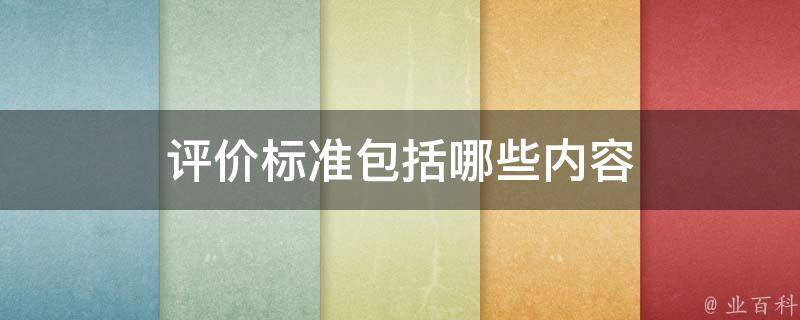 评价标准包括哪些内容