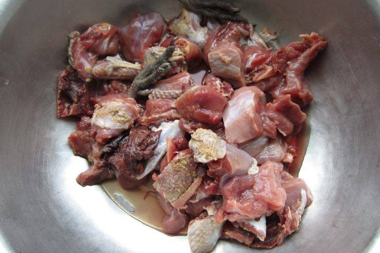 4、去掉内脏和头部,剁块。