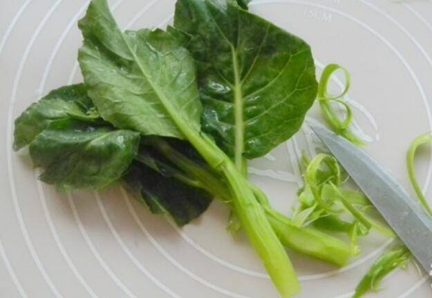 4.烧开水,水里加入1茶匙植物油、食盐和白糖,加入白糖就是芥蓝不涩的窍门。