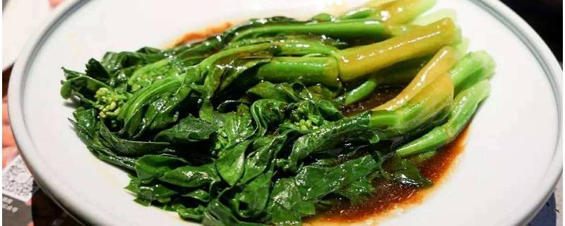 5.将处理好的芥蓝放入烫至刚熟即可捞起放入冰凉水中浸泡冷却后装盘。