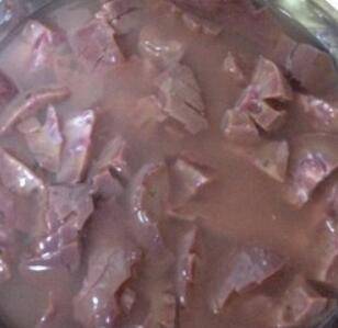 2、腰花切条,切好后放盐水中浸泡半小时。