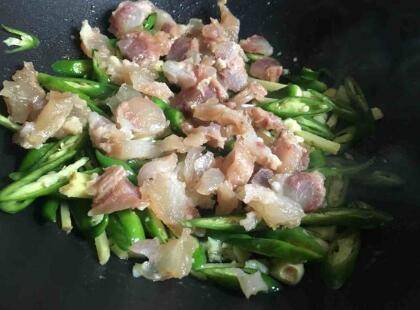 主料:牛蹄筋300克、青椒8个。辅料:大蒜5瓣、生姜20克、八角3个、桂皮1根、香叶3片、香葱2根。