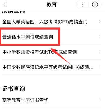 5、下拉找到“普通话水平测试成绩查询”,点击进入。