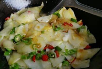 用料:金瓜半个、姜适量、蒜适量、辣椒适量、盐适量、生抽1勺、糖少许、醋(可无)适量。