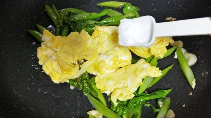 5、炒、炝,炒芥兰时可以放点糖和料酒。糖能够掩盖它的苦涩味,同时料酒也可以起到增香的作用。