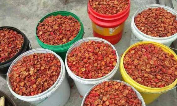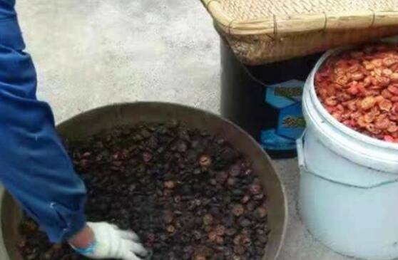 3.切好的山楂片晾干水分,放在塑料桶里面准备用火炒。