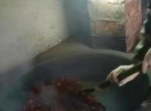 4.用的是大铁锅,小铁铲,将山楂片放进锅里面用铁铲不停地翻动,要受热均匀。