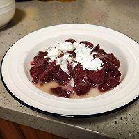 2、猪肝改刀切薄片,放入生粉、料酒。