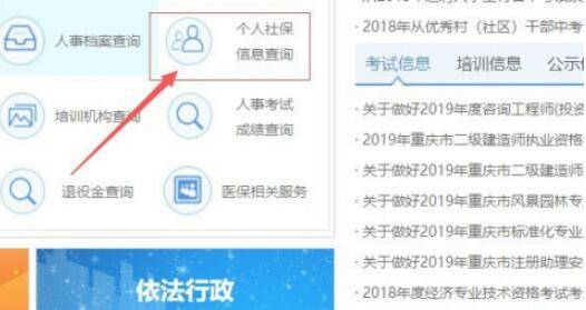 进入重庆人力资源和社会保障网后,找到“个人社保查询”一项,然后点击进入。