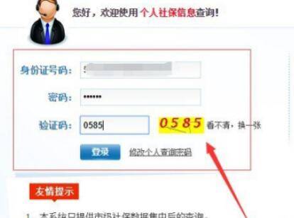 进入个人社保查询登录界面后,输入身份证号码、密码和验证码。