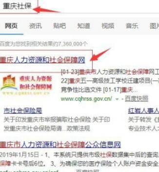 以重庆地区为例,打开搜索引擎,在搜索栏输入”重庆社保”,搜索后找到重庆人力资源和社会保障网然后点击进入。