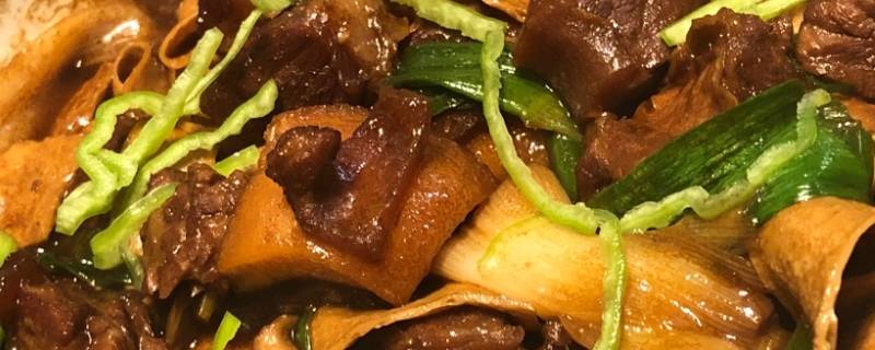 5、小火炒香后放入瓦沟煸炒,放入料酒、醋、冰糖、老抽、生抽,翻炒至牛肉上色,后加入热水,盖住牛肉,大火烧开后调至中小火,20分钟后放入盐,转小火烧1.5小时左右,大火收汁即可。
