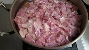 2、将牛瓦沟浸泡2小时,将血水泡出,洗净沥干水备用。