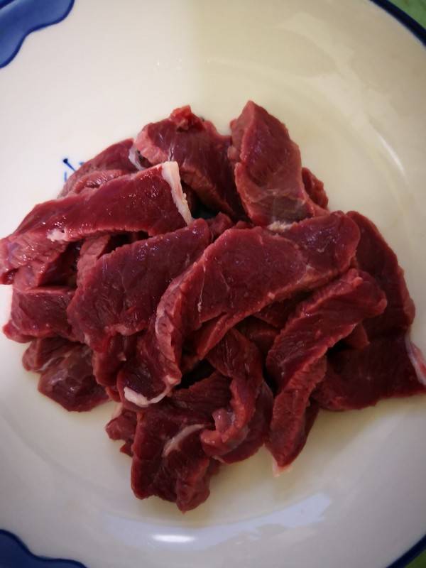 2、牛肉切条,放入香腌料,腌制30分钟。