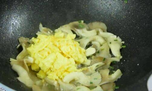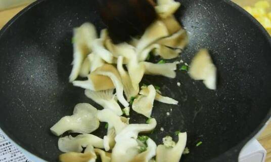 5、倒入洗净撕开的蘑菇,炒至蘑菇变软、出水。