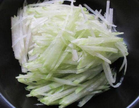 1、把萝卜切成细丝备用。