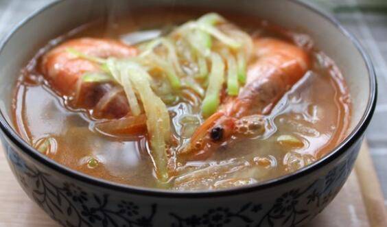 用料:青萝卜半个、海虾少许、葱、姜、盐、花生油。