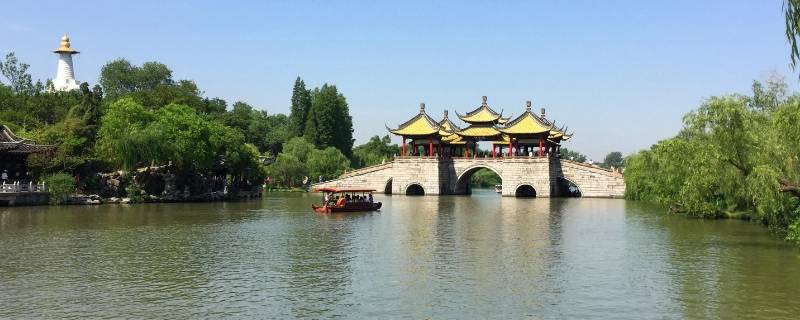 瘦西湖在太平天国时期经历战乱,残破不堪,光绪年间恢复了五亭桥,小金山。