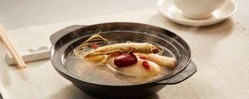 4、抗衰防老:人参含蛋白质、维生素、矿物质等营养成分,还含有多种氨基酸及人参皂苷、人参多糖等活性物质,人参皂苷有抗氧化的作用,能调节内分泌及免疫系统,经常食用能延缓衰老,而鸡肉富含蛋白质,还含有维生素C、维生素E等成分,维生素C、维生素E有抗氧化的作用,能抗衰防老,防止皮肤老化。