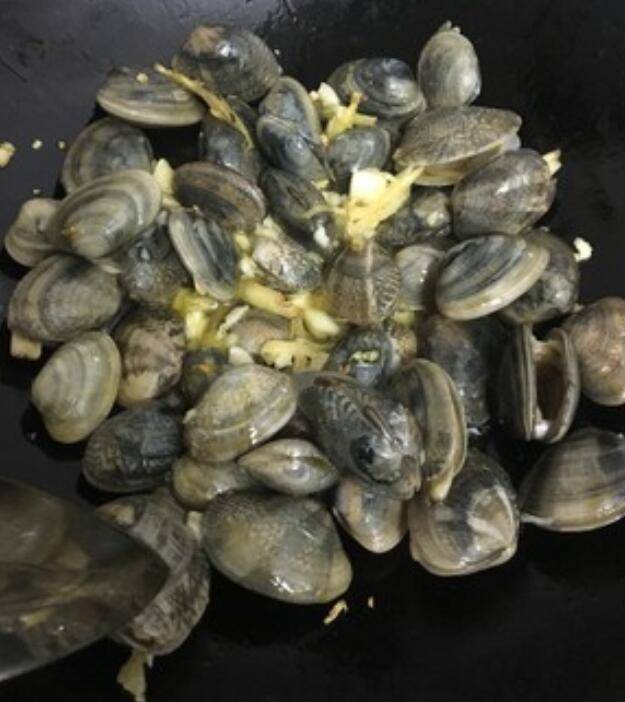 用料:沙甲1000克、油8克、盐2克、葱花5克、蒜6瓣、姜3片、料酒少许。