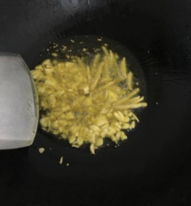 3、倒入适量油,五成热倒入姜蒜,爆香。